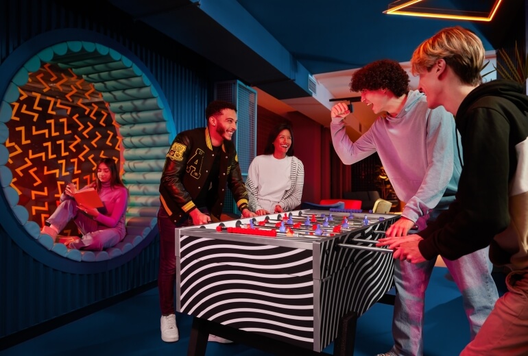 Whether it's after a day out exploring the city or as a reward for a long day of work, our play zone offers what you need for some leisure time and even a laundry corner!