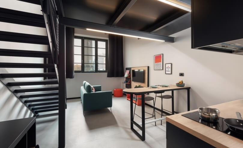 The new CXMilan | Bicocca hotel is a hub where travellers, smart workers and young professionals from all over the world meet to live a unique experience, sharing the desire for a modern, functional accommodation with an energetic and stimulating community. With more than 40 short-stay rooms and many common spaces such as the MICE and coworking areas, you can organise your meetings and corporate events in a well-equipped and welcoming environment. CXMilan | Bicocca is located in a lively neighbourhood in full regeneration, close to the Bicocca metro station and easily accessible by public transport.