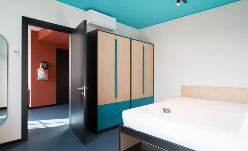 CXMilan | NoM is a "social city," a vibrant community of global citizens sharing intelligent spaces, cutting-edge services, and a lively, engaging atmosphere. At your service, 26,620 square meters of newly designed comfort, 60 meticulously projected hotel rooms, and 115 beds that become the privileged space for rest, focus on goals, and create valuable interactions. Developed as part of the NOM project, representing a deep requalification of the territory, CXMilan | NoM is a true expression of ESG values, thanks to the choice of designer furnishings and BREAM-certified materials that ensure sustainability. Be captivated by the bright and welcoming rooms, the common areas for socializing, working out, and relaxing, and the spaces to focus calmly. All surrounded by 6,921 square meters of greenery and strategically located, steps away from the train station and connected to the center of Milan and Rho Fiera.