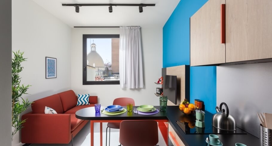 Living away from home will never be the same: studio rooms, shared flats and an infinity of common spaces and coworking areas where you can study, work, cultivate your passions and make new friends. Come for a coffee, stay as long as you like.