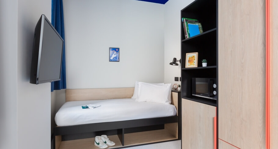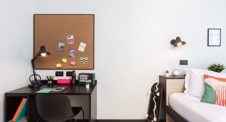 Offriamo camere soleggiate e dal design moderno e funzionale, che creano l'atmosfera perfetta per studiare, concentrarti e per dare il meglio di te.