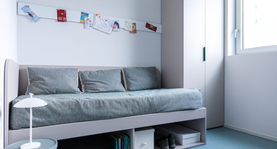 Offriamo camere soleggiate e dal design moderno e funzionale, che creano l'atmosfera perfetta per studiare, concentrarti e per dare il meglio di te.