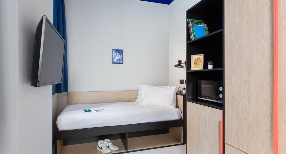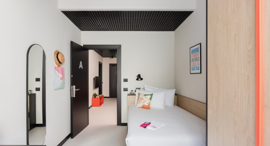 Offriamo camere soleggiate e dal design moderno e funzionale, che creano l'atmosfera perfetta per studiare, concentrarti e per dare il meglio di te.