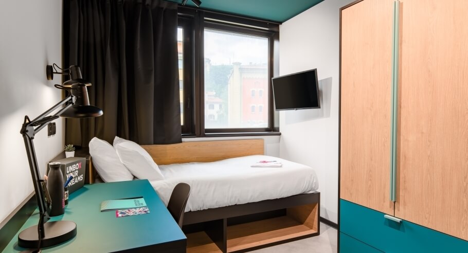 Offriamo camere soleggiate e dal design moderno e funzionale, che creano l'atmosfera perfetta per studiare, concentrarti e per dare il meglio di te.